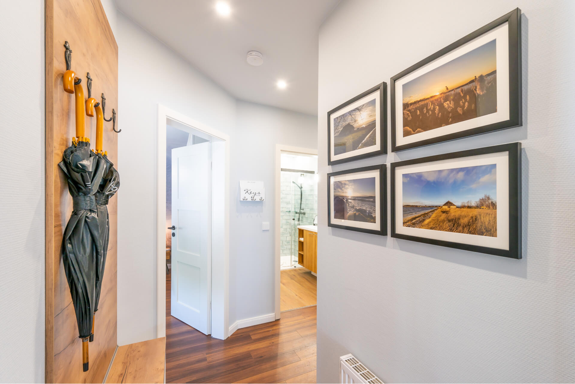 Diese traumhaft süße Wohnung hat uns das wechselhafte Klima auf der Insel vergessen lassen. Selbst bei Sturm hatten wir es sehr gemütlich und mindestens so schön wie zu Hause. Lecker kochen in der voll ausgestatteten Küche, aufwärmen in der Infrarotsauna wenn man durchgefroren vom windigen Strand kommt oder gemütlich chillen in der Abendsonne in der kleinen westlichen Kuschelecke. Hier haben die Besitzer an alles gedacht was man so braucht, Gaze am Schlafzimmerfenster gegen Insekten, kuschelige Kissen überall, Regenschirme und ein Windschutz für den Strand sind auch vorhanden. Die Wohnung ist sehr liebevoll gestaltet. Hochwertige Materialien gepaart mit schwarzen und goldenen Elementen, edles Holz und Leder dennoch praktisch und nicht gebrauchsfragil. Das Lichtkonzept ist sehr schön gelöst.