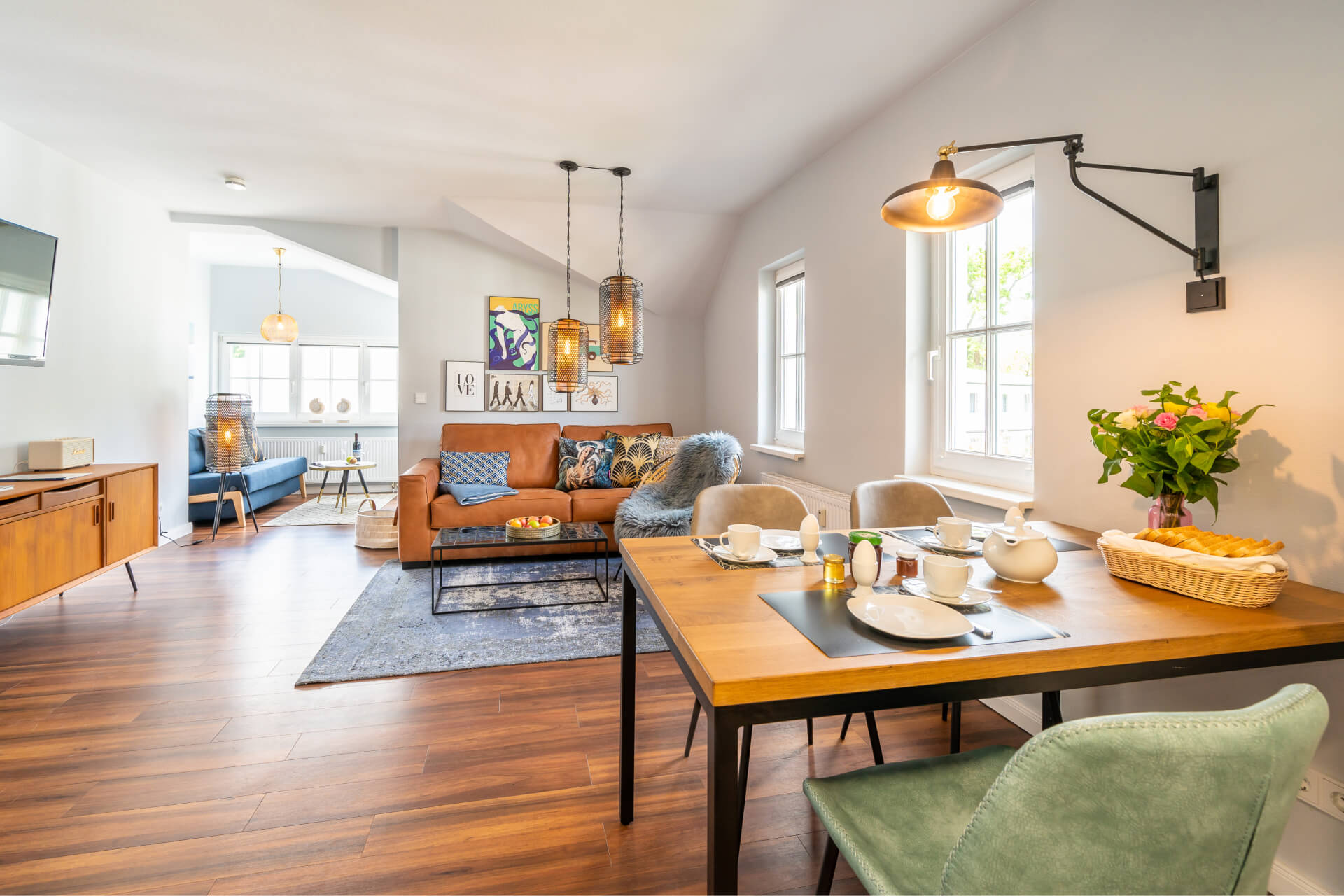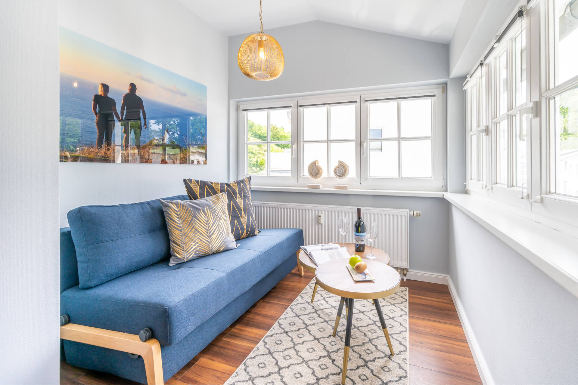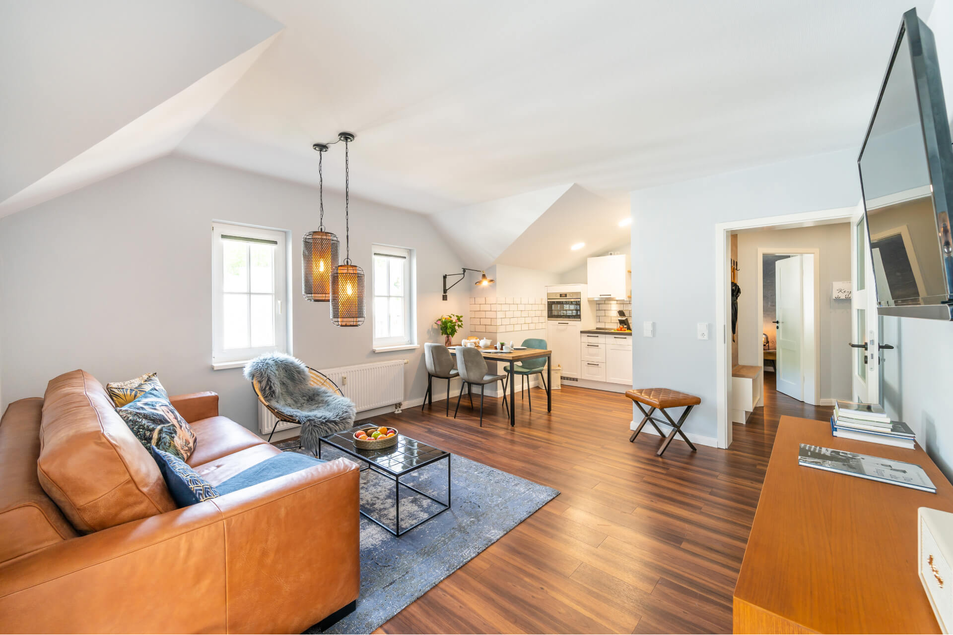 Dieses zauberhafte 2-Raum-Appartement "Ostseeloft" ist ca. 52 qm groß und begrüßt Sie im Dachgeschoss des Hauses unter leichten Dachschrägen, die eine besondere Gemütlichkeit vermitteln.